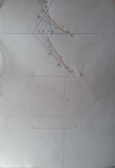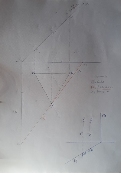 En el ejercicio C denominé las trazas del plano y la recta oblicua. Pero quería saber como representar el lado A-C y el lado B-C ya uqe no puedo usar una horizontal, puedo usar una oblicua? Gracias